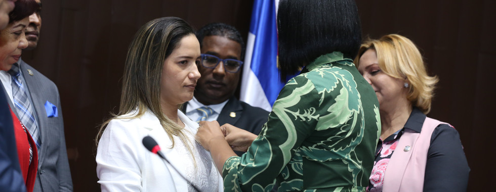 De inmediato concluida la aprobación de la terna el presidente de la Cámara de Diputados y una comisión de diputados procedió a tomarle el juramento y a colocarle el pin que identifica a ese órgano legislativo.